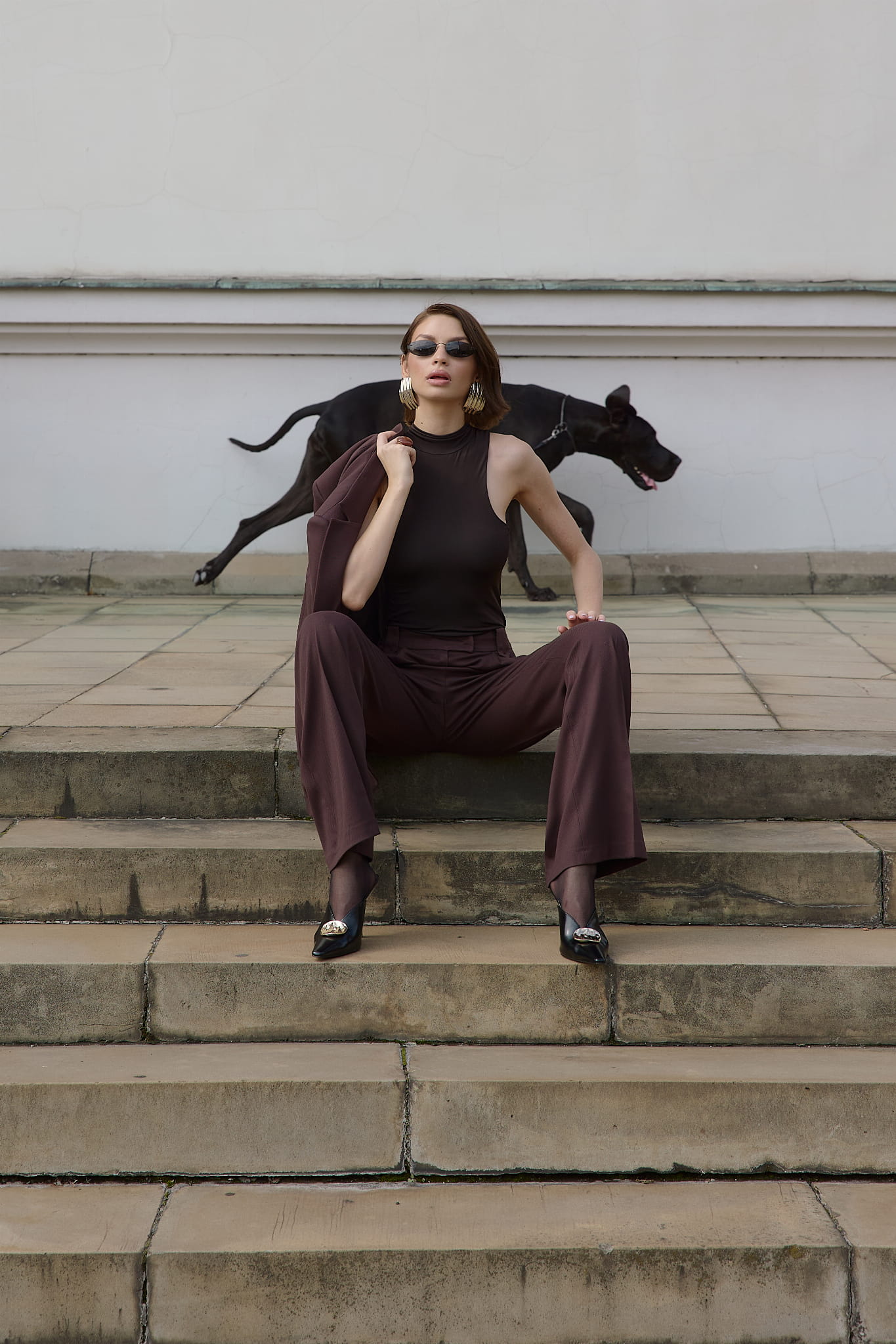 - modelka ma 175cm wzrostu, prezentuje rozmiar 34