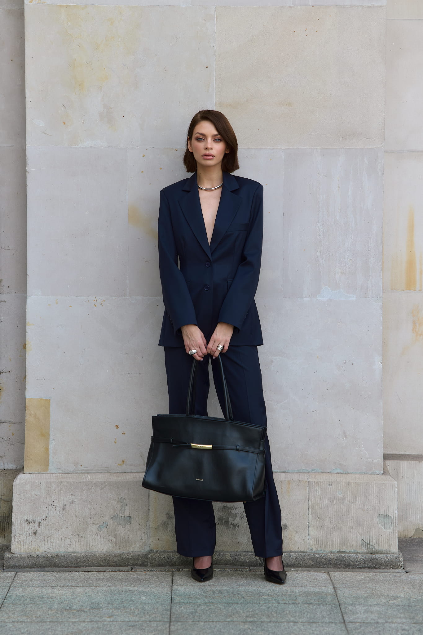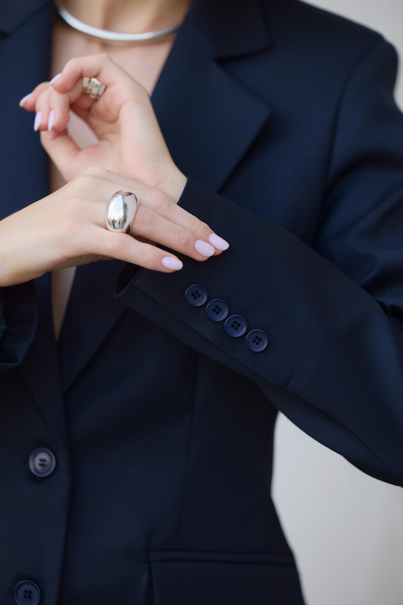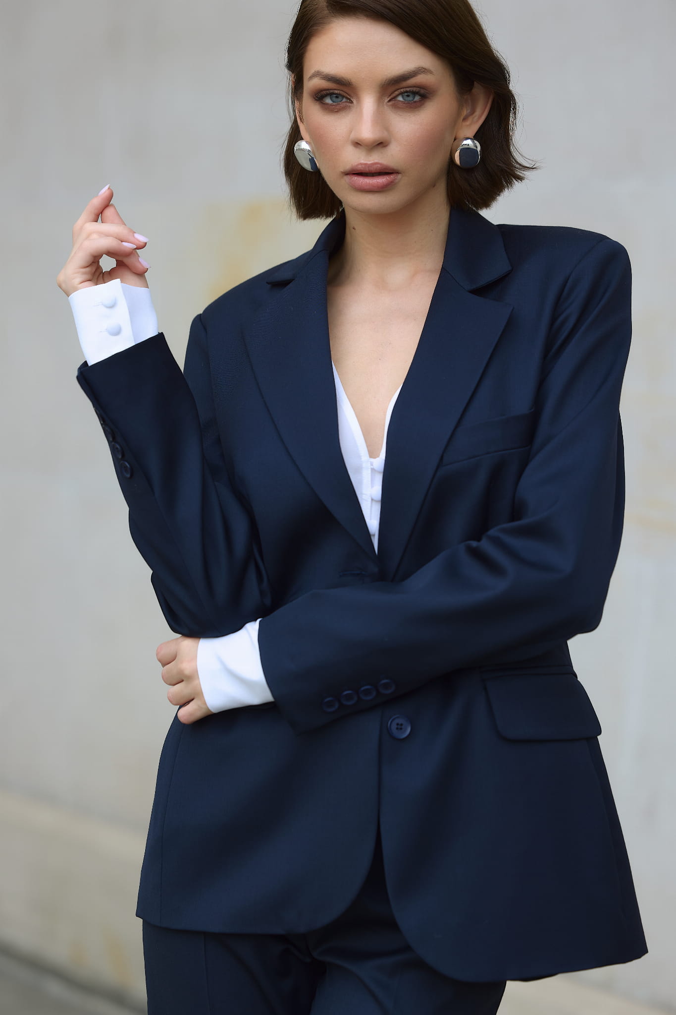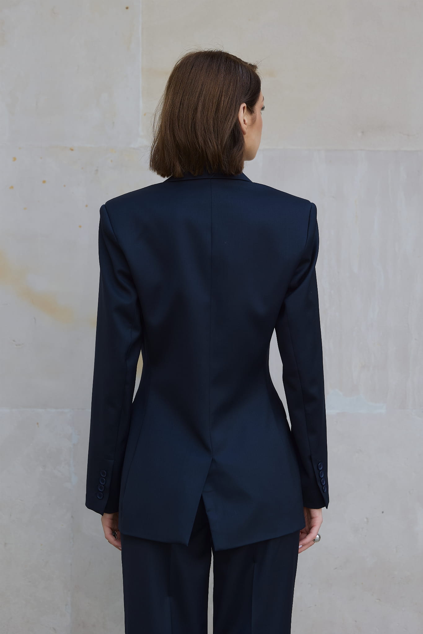 - marynarka o dopasowanym kroju, wykonana ze 100% wełny w kolorze granatowy